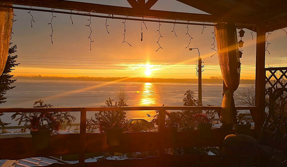 Powierzchnia domu rozłożona jest na 3 poziomach (TO EWENEMENT W TYM MIEJSCU), a na każdej widać piękny wschód słońca nad jeziorem. A z ostatniej kondygnacji jest niepowtarzalny i nie spotykany w tym miejscu przepiękny widok)