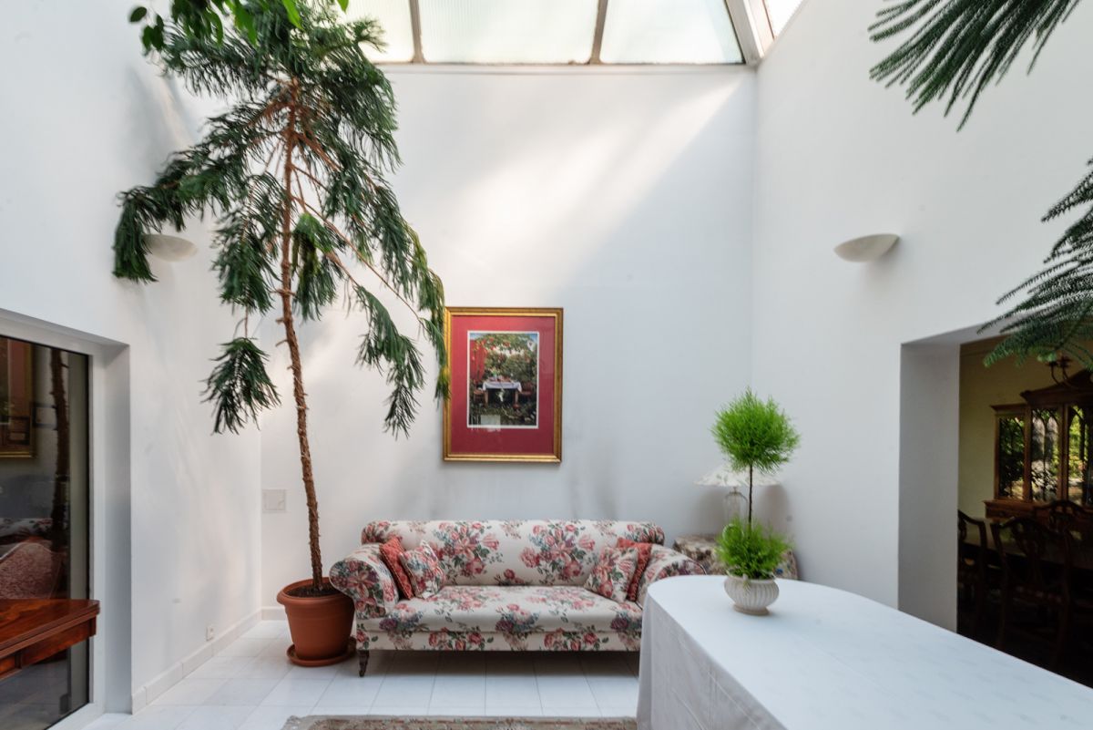 Patio with a glass roof (height 5.7 m) bringing natural light and harmony into the interior