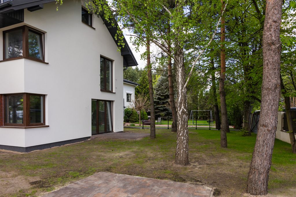 Dwupoziomowy dom z dużym ogrodem zlokalizowany w cichym i zielonym miejscu. Dojazd do centrum Warszawy około 35 min trasą S8 lub koleją .