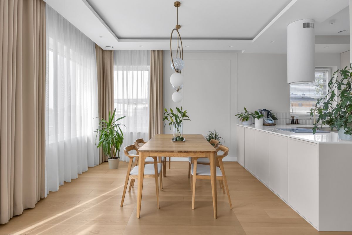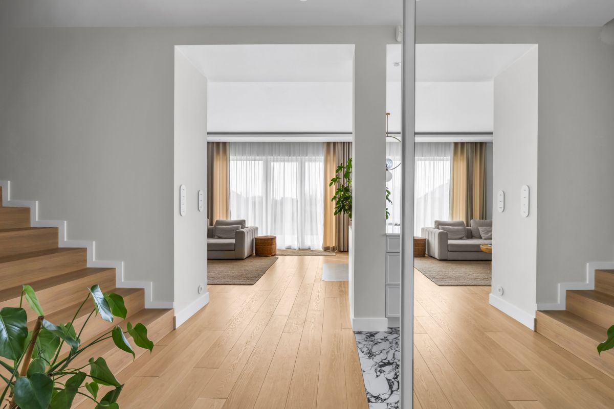 Dom o powierzchni 137,16 m² został zaprojektowany przez renomowaną pracownię WZ Studio, co przekłada się na bardzo przemyślany układ i funkcjonalność. Największym atutem tej nieruchomości jest zdecydowanie standard wykończenia, zastosowano wysokiej klasy materiały, naturalne surowce i spójną, ponadczasową estetykę. To przestrzeń, która robi wrażenie, ale jednocześnie pozostaje praktyczna w codziennym użytkowaniu.