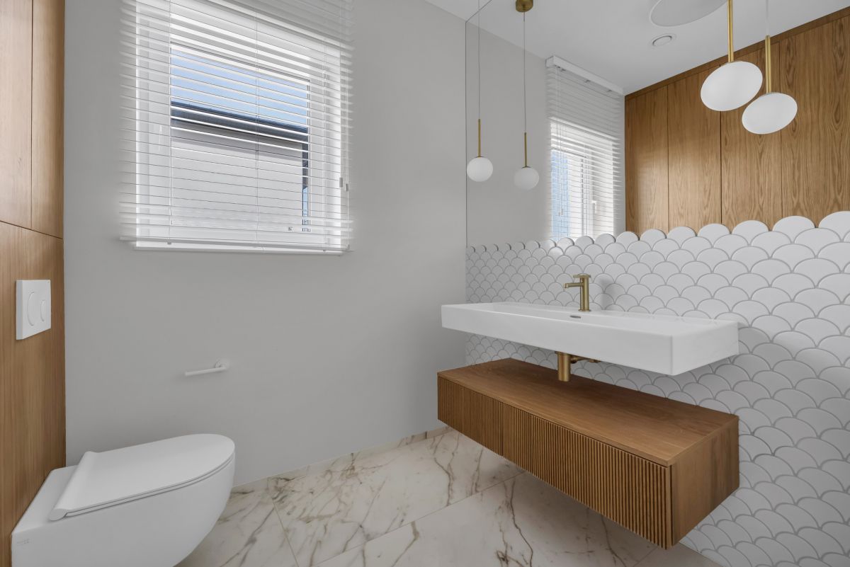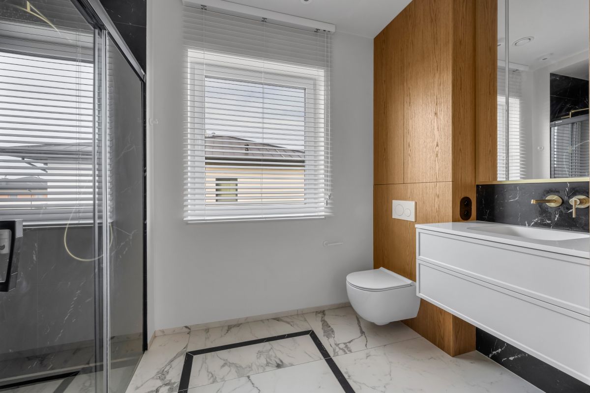 The house, with a total area of 137,16 m², was designed by the renowned architectural studio WZ Studio, resulting in a highly functional and thoughtfully planned layout. The standout feature of this property is undoubtedly its high standard of finish - premium materials, natural elements, and a cohesive, timeless design create an interior that is both impressive and practical for daily living.