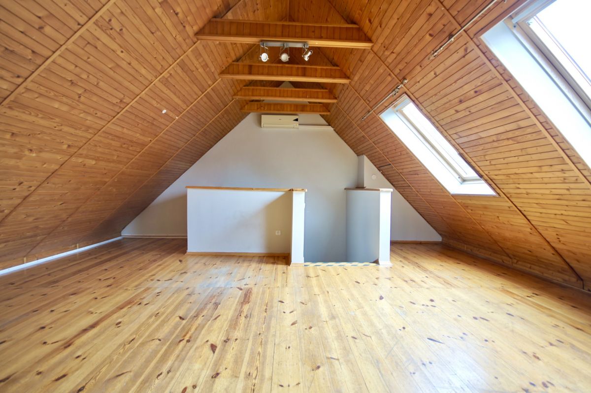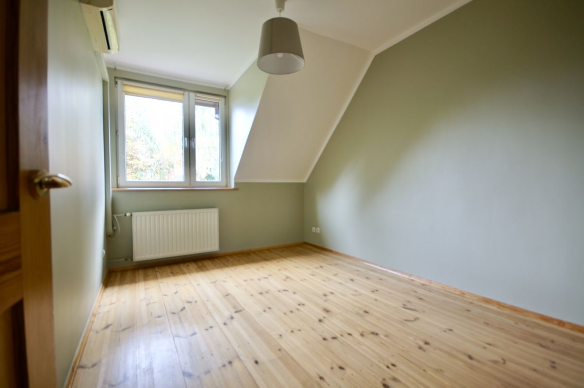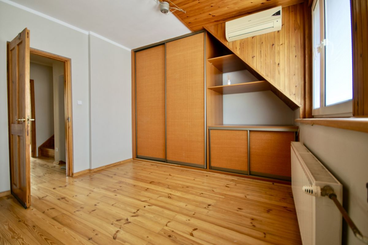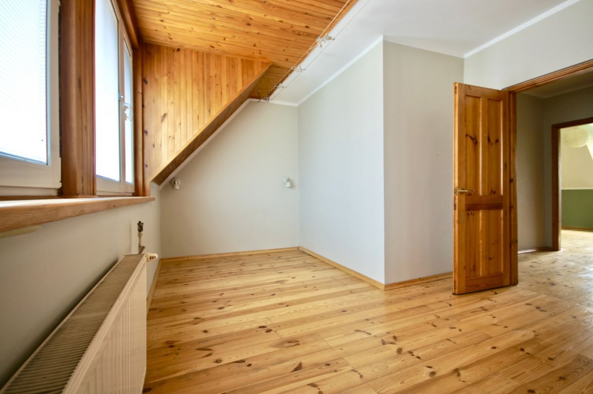 Na piętrze są 3 sypianie (2 z szafami w zabudowie) i łazienka z wanną. Poddasze może pełnić funkcję kolejnej sypialni lub gabinetu.