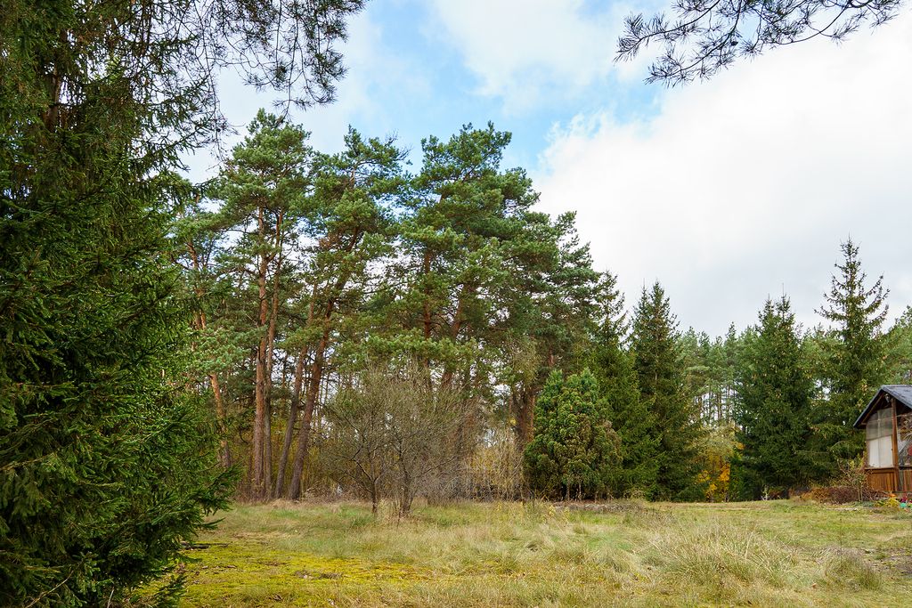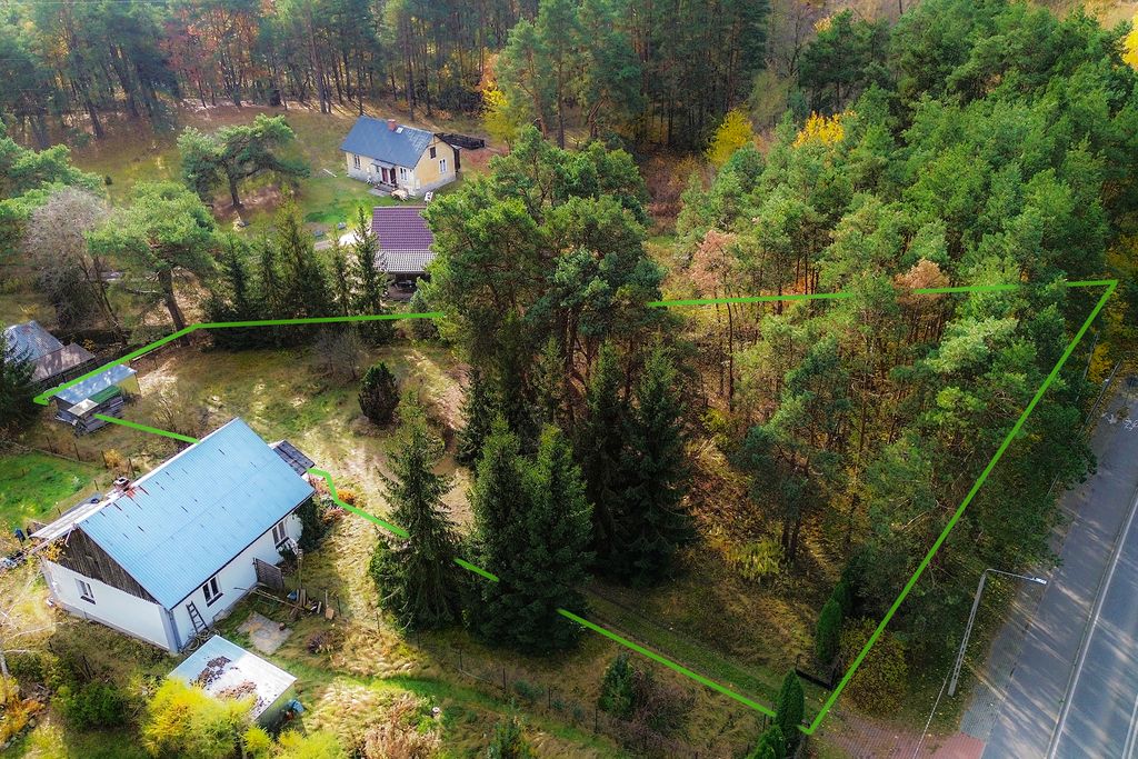 - parcela pokryta jest lasem sosnowym, który oddziela część mieszkaniową od głównej drogi