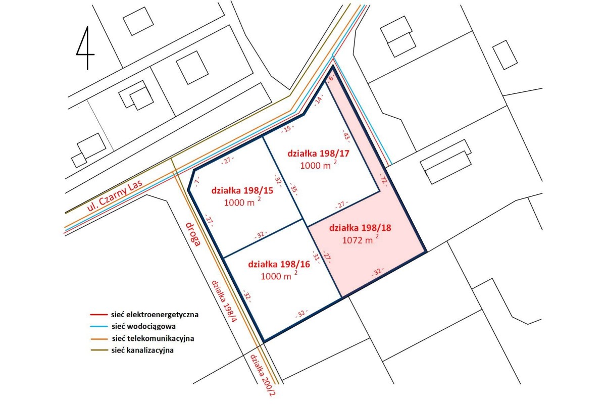 Na sprzedaż działka budowlana nr ewid. 198/18 o powierzchni 1072 m² w Kajetanach, gmina Nadarzyn, położona w drugiej linii zabudowy od ul. Czarny Las, z bezpośrednim dostępem do niej.