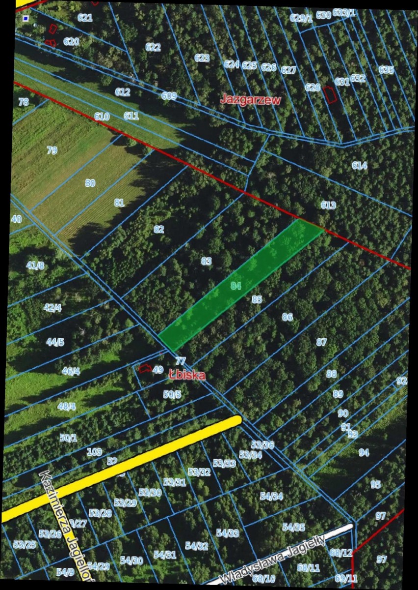 Działka leśna o powierzchni 3 579 m2 położona w miejscowości Łbiska, 5 km od Piaseczna.