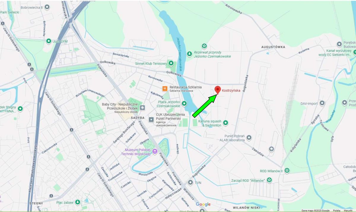 Na sprzedaż atrakcyjna działka niezabudowana o powierzchni 892 m², położona w Warszawie, w dzielnicy Mokotów, przy ul. Kostrzyńskiej (róg ul. Biechowskiej).