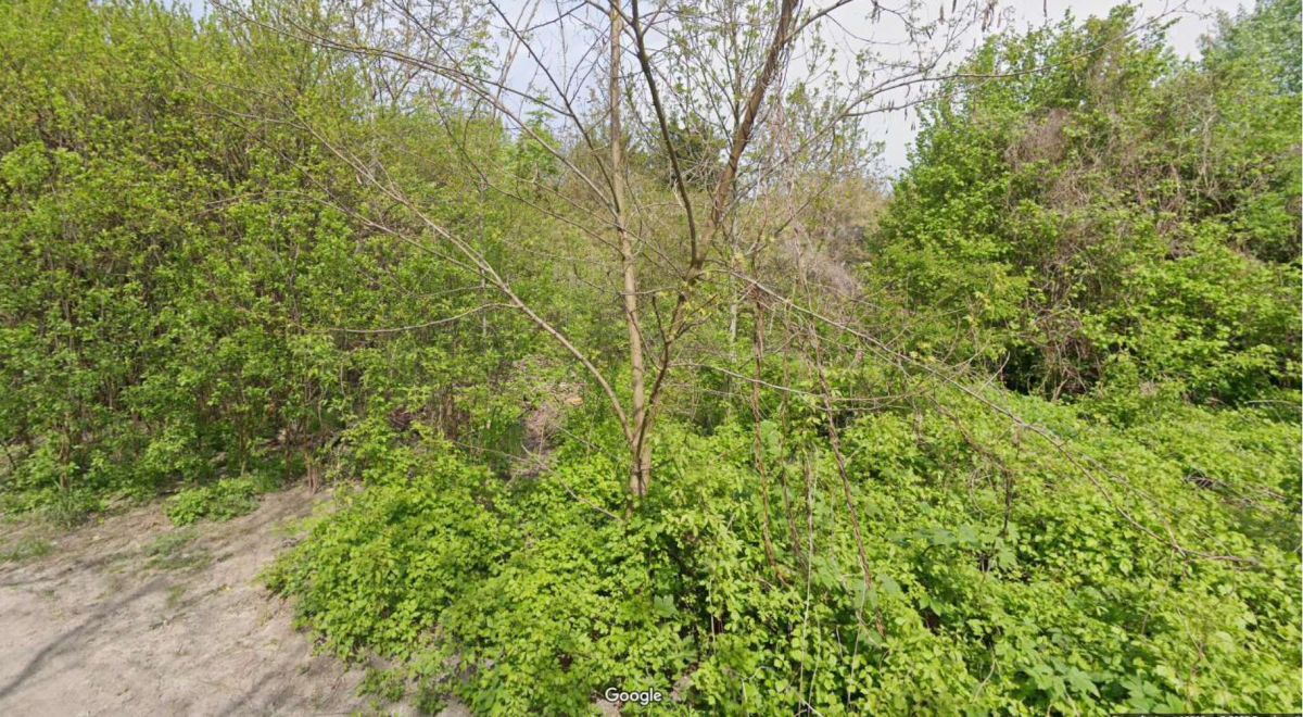 Teren: płaski, niezagospodarowany, nieogrodzony, porośnięty drzewami i niską roślinnością