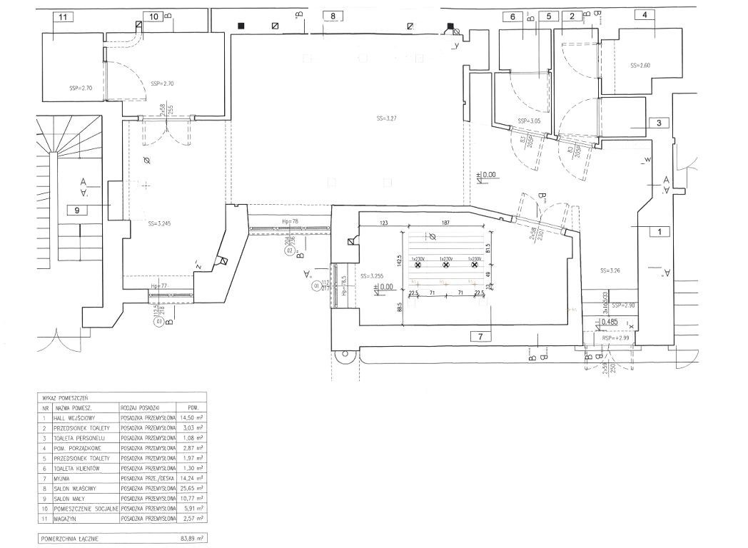Lokal, w którym znajduje się salon fryzjerski składa się z: