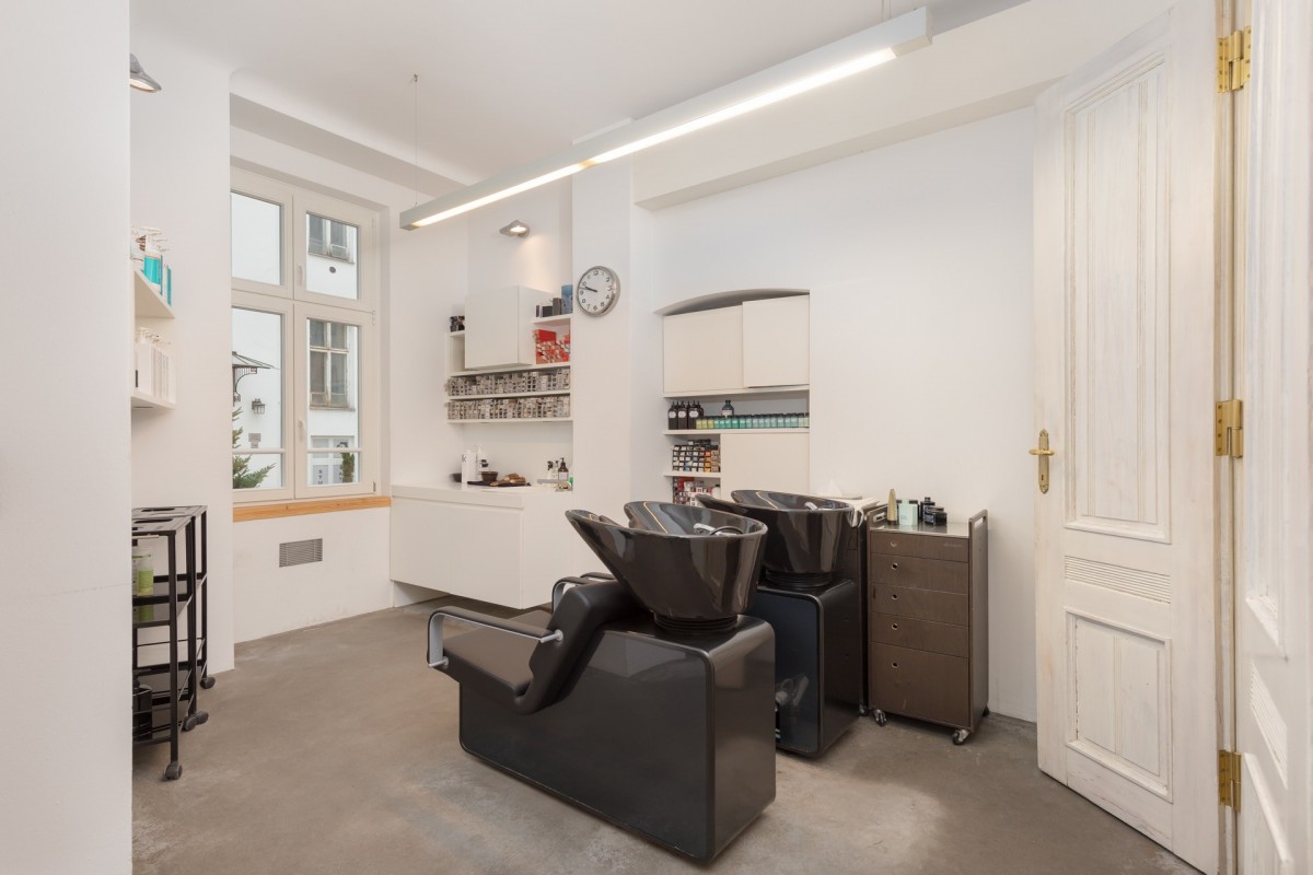 -dużego open space - 5 stanowisk fryzjerskich + 2 stanowiska do mycia