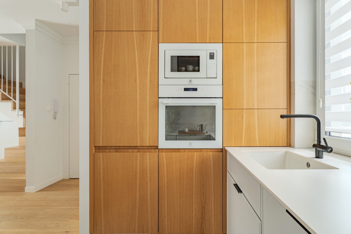 Wnętrze zostało zaprojektowane przez architekta, a użyte do jego wykończenia materiały są wysokiej jakości. Na wyróżnienie zasługują naturalne dębowe podłogi, dębowe schody, wyposażenie kuchni oraz wykonane przez stolarza zabudowy meblowe.