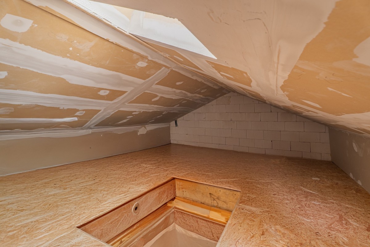 Strych służy jako dodatkowa przestrzeń do przechowywania.
