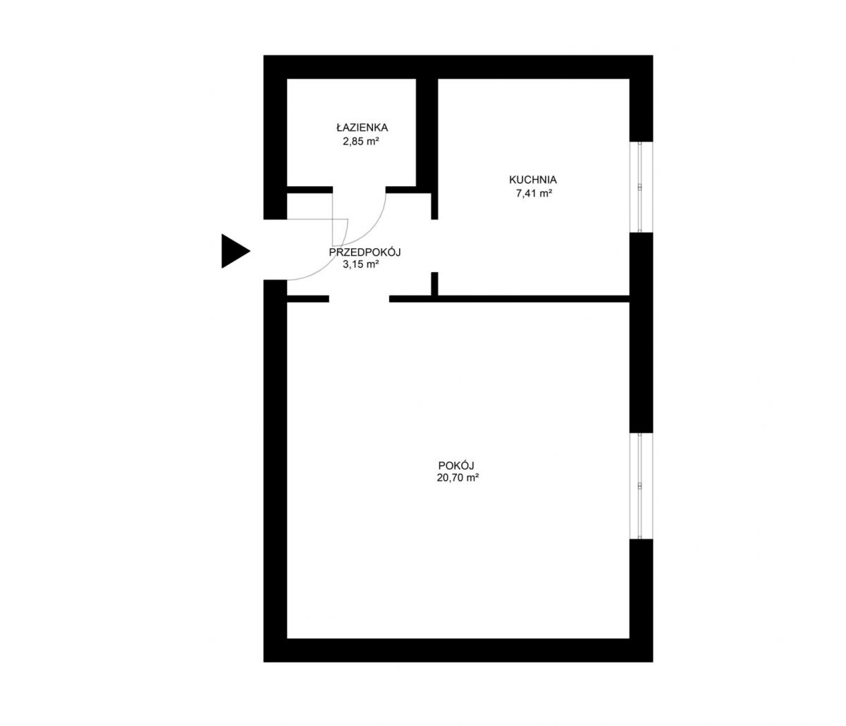 Funkcjonalny układ - pokój, kuchnia, łazienka, przedpokój oraz duża piwnica (8 m²) zapewniają wygodną przestrzeń do życia.