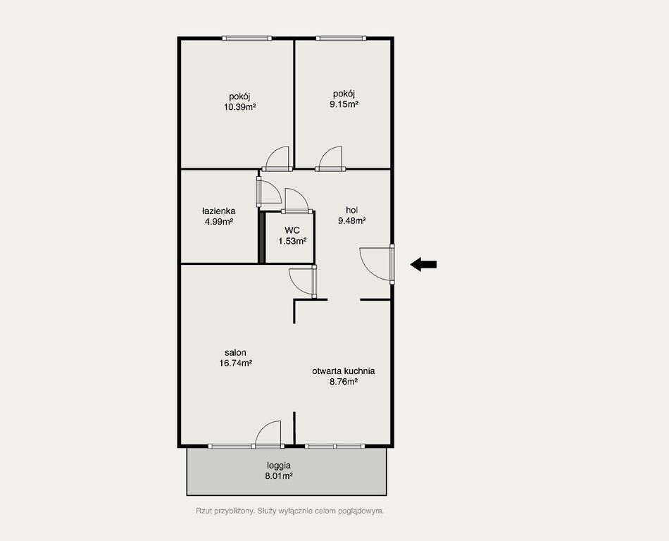 Powierzchnia mieszkania: 60,49 m² loggia 8,01 m²
