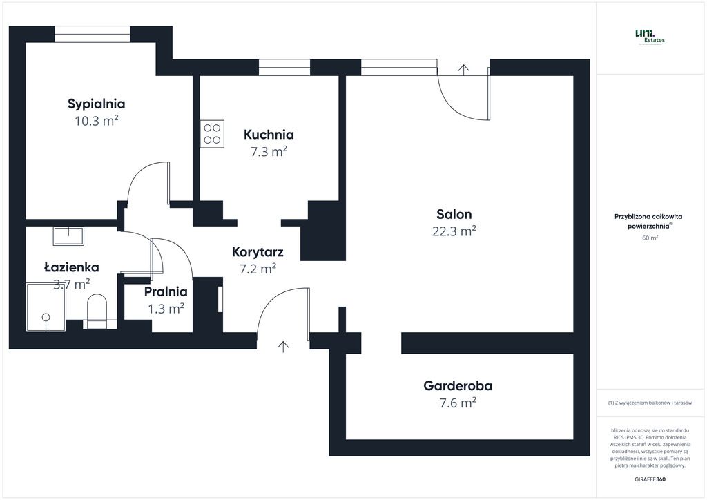 Łączna powierzchnia użytkowa: ok. 60 m² (z garderobą).