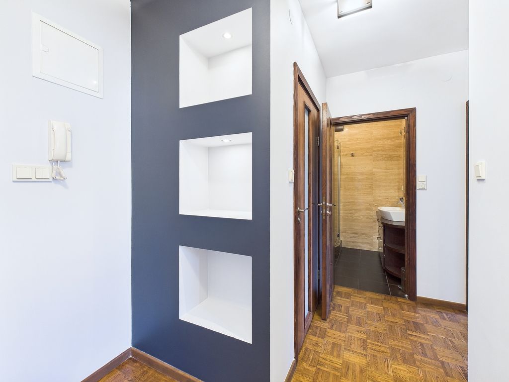 • Łazienka: 3,78 m² z ogrzewaniem podłogowym, włoski trawertyn, gres, armatura Grohe i Roca,