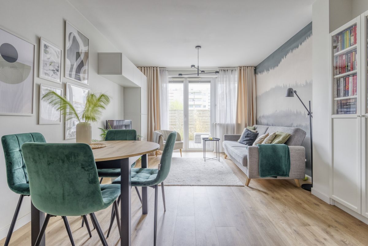 Na sprzedaż wyjątkowe, nowoczesne mieszkanie o powierzchni 45,4 m², położone na parterze w spokojnej i kameralnej inwestycji. Lokal składa się z dwóch pokoi i zachwyca przemyślanym, niezwykle funkcjonalnym układem pomieszczeń. Przestronny salon z aneksem kuchennym o powierzchni 26,9 m² ma podłużny kształt, dzięki czemu jest bardzo ustawny i pozwala na swobodną aranżację strefy wypoczynkowej oraz jadalnianej. Salon wychodzi na zachodnią stronę świata, dzięki czemu wnętrze jest pełne naturalnego światła przez większość dnia, a popołudniowe słońce tworzy przyjemny, ciepły klimat. Z salonu można wyjść bezpośrednio do dużego, prywatnego ogródka o powierzchni 25 m², który stanowi idealne miejsce na relaks, spotkania z przyjaciółmi lub stworzenie zielonej przestrzeni z własnym klimatem.