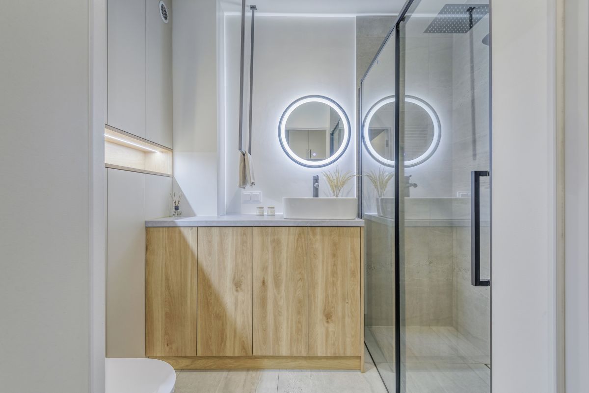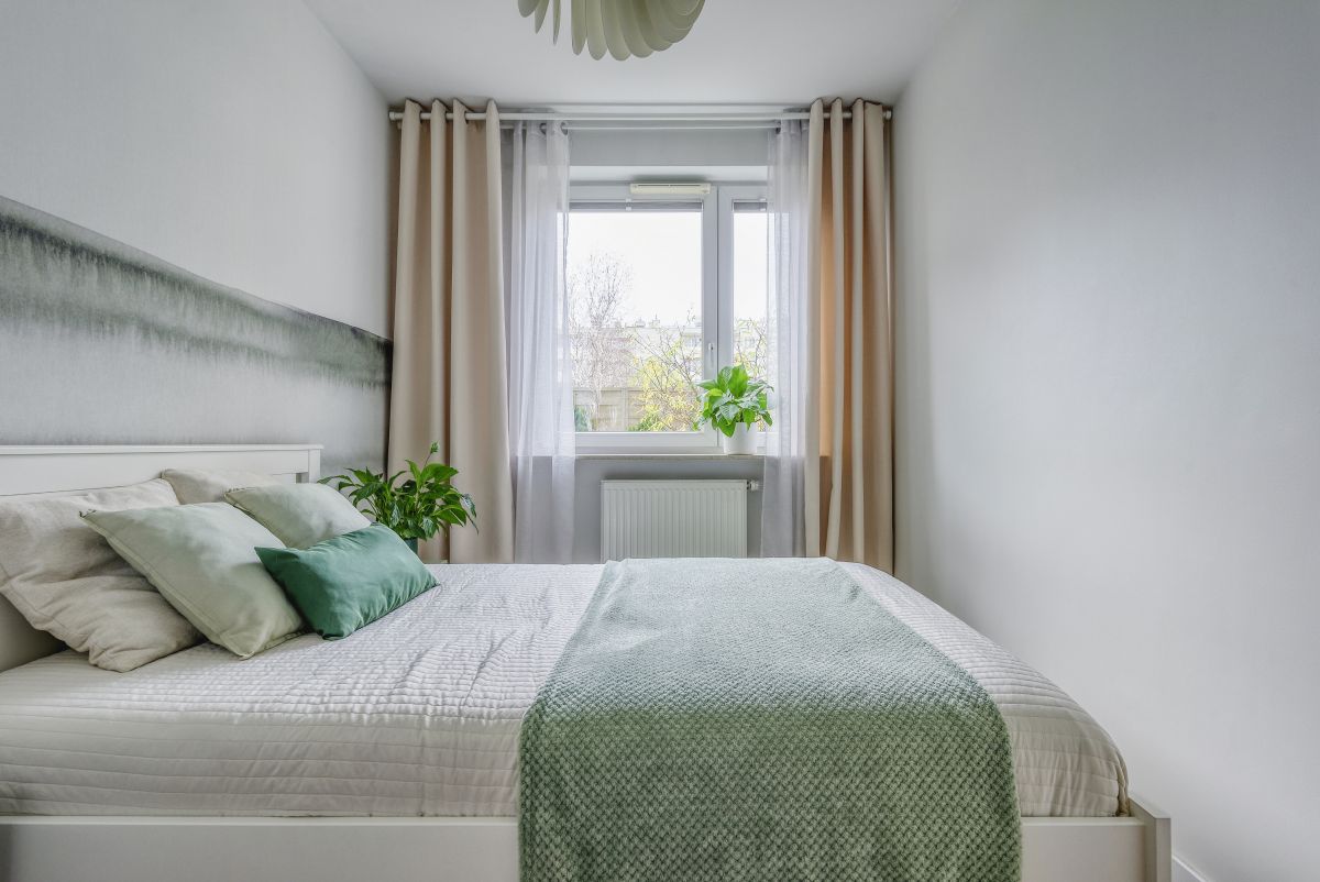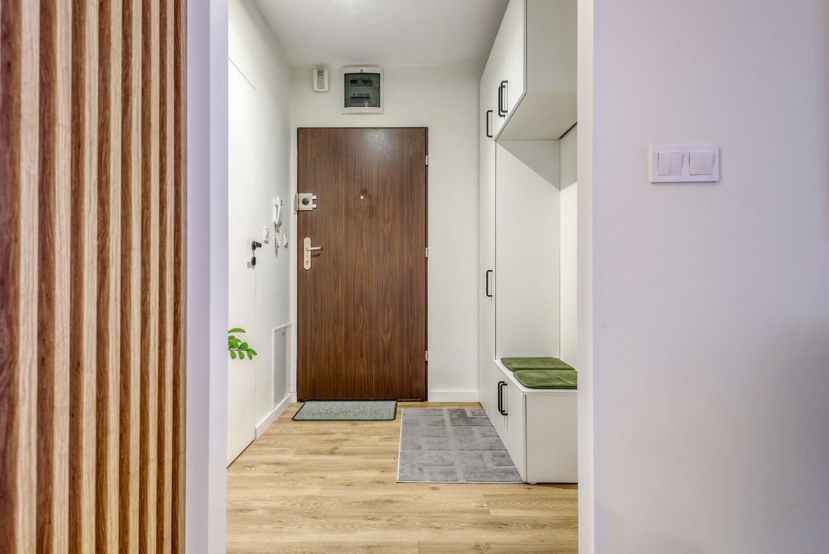 Sypialnia o powierzchni 10 m² i szerokości 2,44 m została zaprojektowana tak, by pomieścić pełnowymiarowe łóżko z dostępem z obu stron, co zapewnia komfort codziennego użytkowania. W korytarzu o powierzchni 4,6 m² znajduje się pojemna szafa, która pozwala na wygodne przechowywanie rzeczy i utrzymanie porządku w mieszkaniu. Łazienka o powierzchni 3,9 m² została urządzona w praktyczny i ponadczasowy sposób - jest elegancka, funkcjonalna i utrzymana w uniwersalnej kolorystyce.