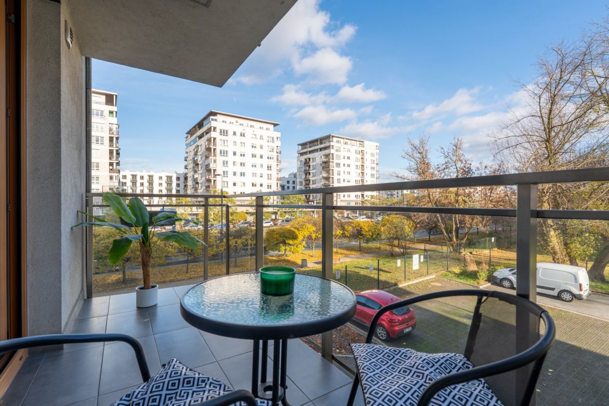 Jasne i funkcjonalne 3-pokojowe mieszkanie z balkonem, położone na 1. piętrze nowoczesnego budynku z 2018 roku przy ul. Rudnickiego, na zielonych Bielanach.