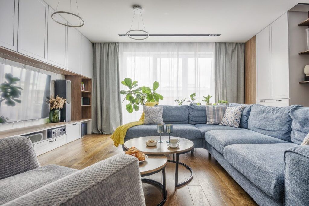 - Salon z aneksem kuchennym i jadalnią – ok. 38 m²