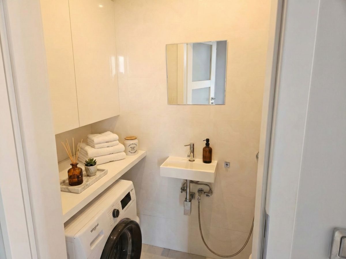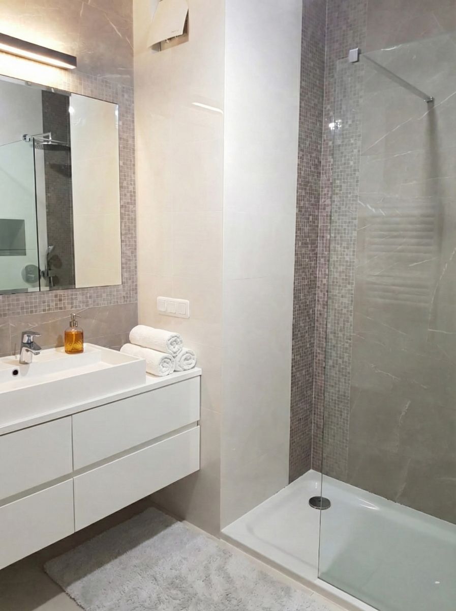 - Primary bedroom - spacious, air-conditioned and well-arranged, offering the same impressive view of the city center. It features direct access to the loggia - a perfect spot for morning coffee overlooking the city. A large, private walk-in closet is attached to the bedroom.
