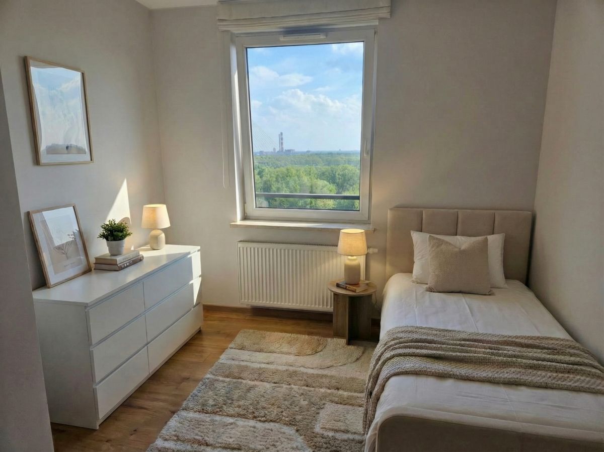 - Second bedroom - a smaller room, ideal as a guest bedroom, children's room, or study. The windows face south-east, offering a soothing view of the Vistula River and the Siekierkowski Bridge.