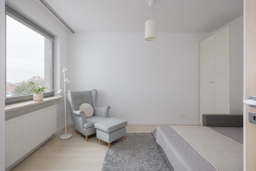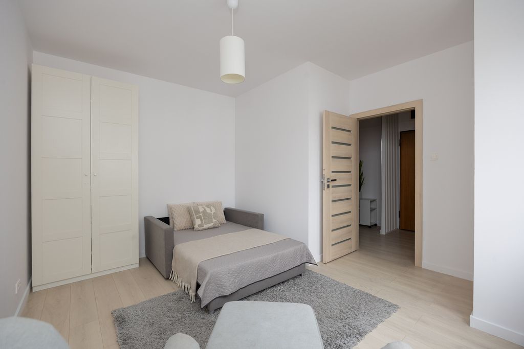 – ustawna sypialnia (13,4 m²) z wnęką na łóżko, miejscem na biurko oraz szafą,