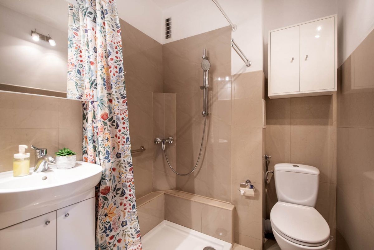 Mimo świetnej lokalizacji, która daje mieszkańcom dostęp do wielu środków komunikacji miejskiej- mieszkanie to nie jest bardzo głośne- budynek oddalony jest od ulicy, zatem można w nim spokojnie odpocząć po pracy. Istnieje także możliwość parkowania samochodu w pobliżu na bezpłatnym parkingu.