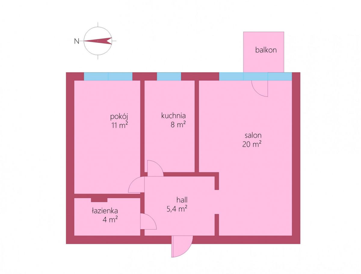 Mieszkanie składa się z dwóch ustawnych pokoi ( 11m2, 20m2 ) oddzielnej widnej kuchni , łazienki z WC , przedpokoju oraz małego balkonu. Do każdego pomieszczeń wchodzi się z korytarza.