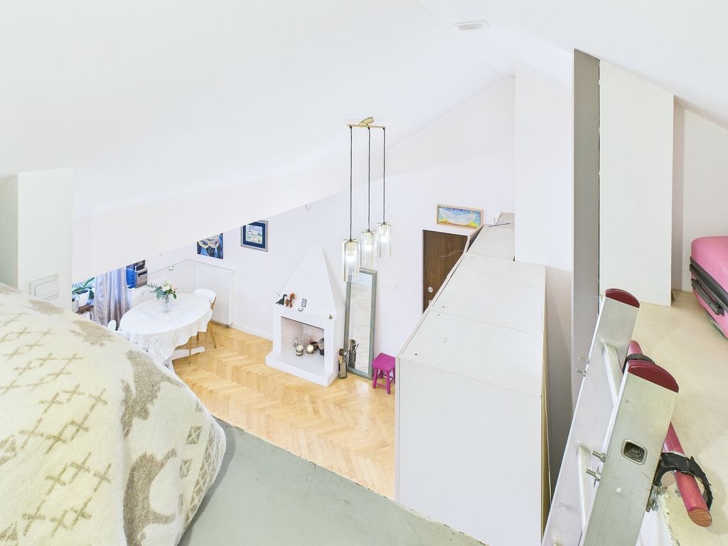 - Dodatkowych antresol i wysokich sufitów, wynikających z położenia na poddaszu.