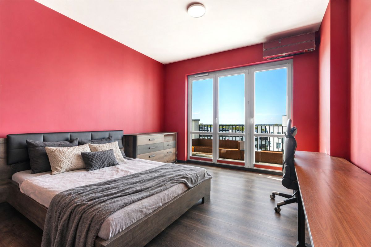 Układ mieszkania został zaprojektowany w sposób funkcjonalny i nowoczesny, z wyraźnym podziałem na część dzienną oraz prywatną. Przestronny salon z kuchnią w zabudowie i pełnym wyposażeniem AGD stanowi serce apartamentu, a cztery dodatkowe pokoje, garderoba, łazienka oraz oddzielne WC zapewniają komfort nawet wymagającej rodzinie lub osobom pracującym z domu.