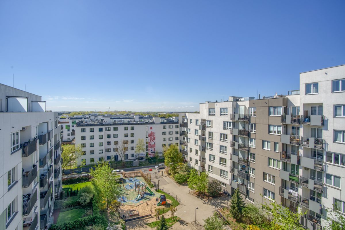 Apartament znajduje się na zamkniętym, zadbanym osiedlu o nowoczesnej architekturze. Lokalizacja łączy spokój z bardzo dobrą komunikacją - w pobliżu znajdują się przystanki autobusowe oraz stacja kolejowa Warszawa Okęcie, zapewniające szybki dojazd do centrum. Okolica dynamicznie się rozwija, oferując dostęp do infrastruktury miejskiej, terenów rekreacyjnych oraz punktów usługowych .
