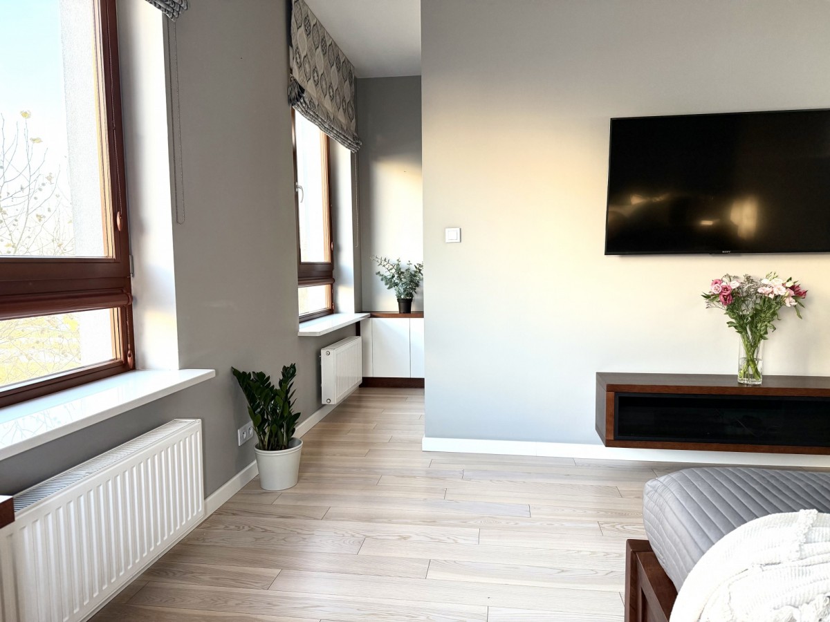 • Balkon, klimatyzacja, designerskie oświetlenie, eleganckie meble — tutaj każdy detal tworzy spójny efekt.