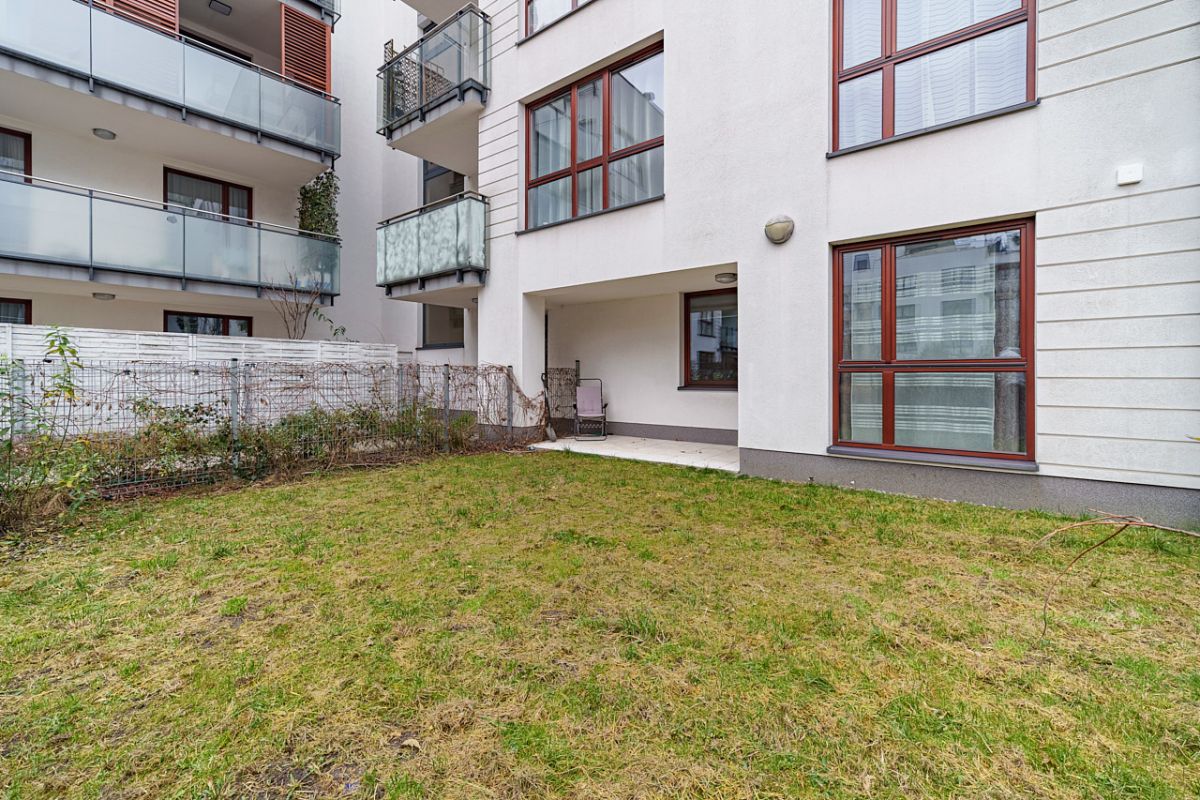 przestronna sypialnia (17 m²) z dużą szafą wnękową i wyjściem do kameralnego ogródka o powierzchni 14 m² — idealne miejsce na poranną kawę lub spokojny relaks,