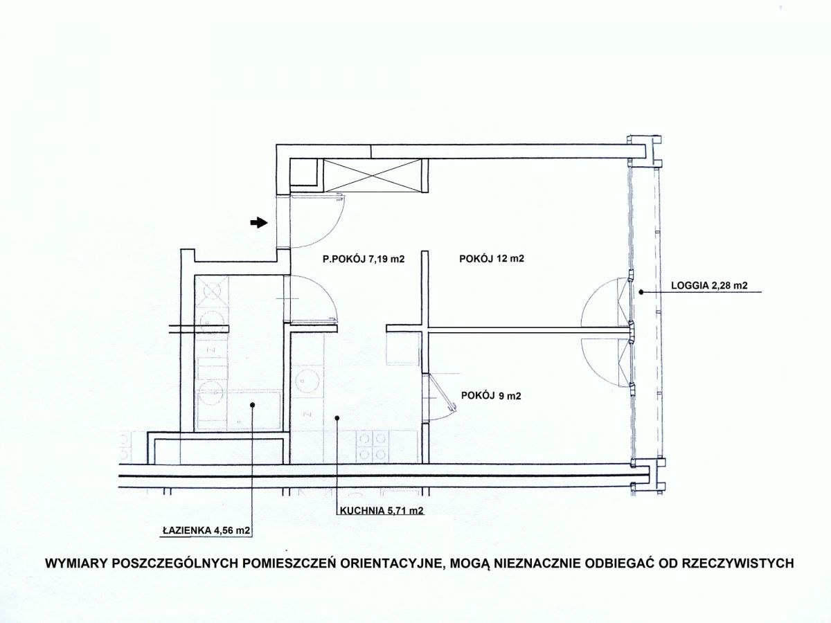 - niewielka loggia (za to ciągnąca się wzdłuż mieszkania)