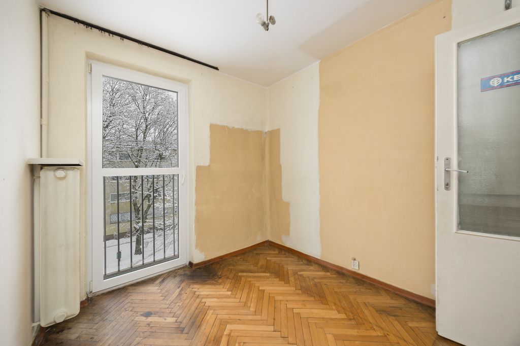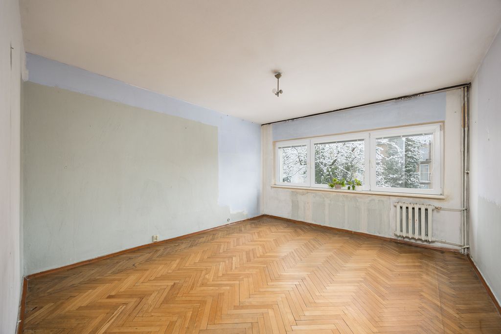 The apartment is situated on the 2nd floor of a 3-storey building from 1958. Excellent location – right next to Księcia Janusza Metro Station. Dual-aspect apartment with a balcony and a cellar. The property offers huge potential for individual arrangement and requires general renovation.