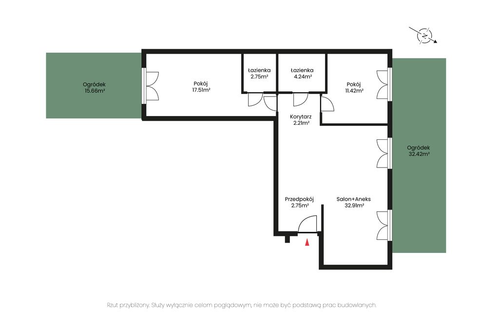 - ogródek kameralny (15,66 m²) dostępny wyłącznie z sypialni głównej – intymny, zielony zakątek, w którym można cieszyć się ciszą i prywatnością.