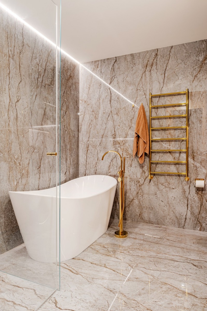 W apartamencie zainstalowano centralną klimatyzację oraz ogrzewanie podłogowe w łazienkach. Na podłogach znajdują się olejowane deski dębowe oraz wysokiej klasy terakota. Kuchnia została wykonana z forniru i wyposażona w dwie lodówki w zabudowie, lodówkę na wino oraz liczne, estetyczne szafy i schowki.