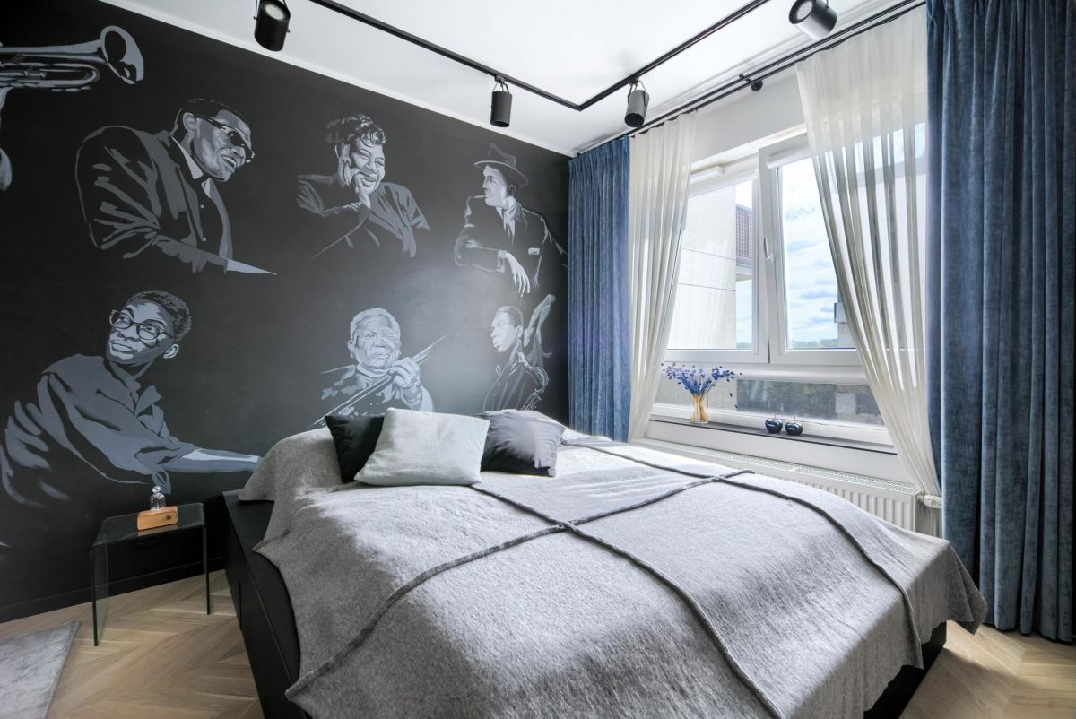 Na jednej ze ścian znajdują się ręcznie malowane portrety muzyków, które nadają wnętrzu artystyczny, niepowtarzalny klimat.