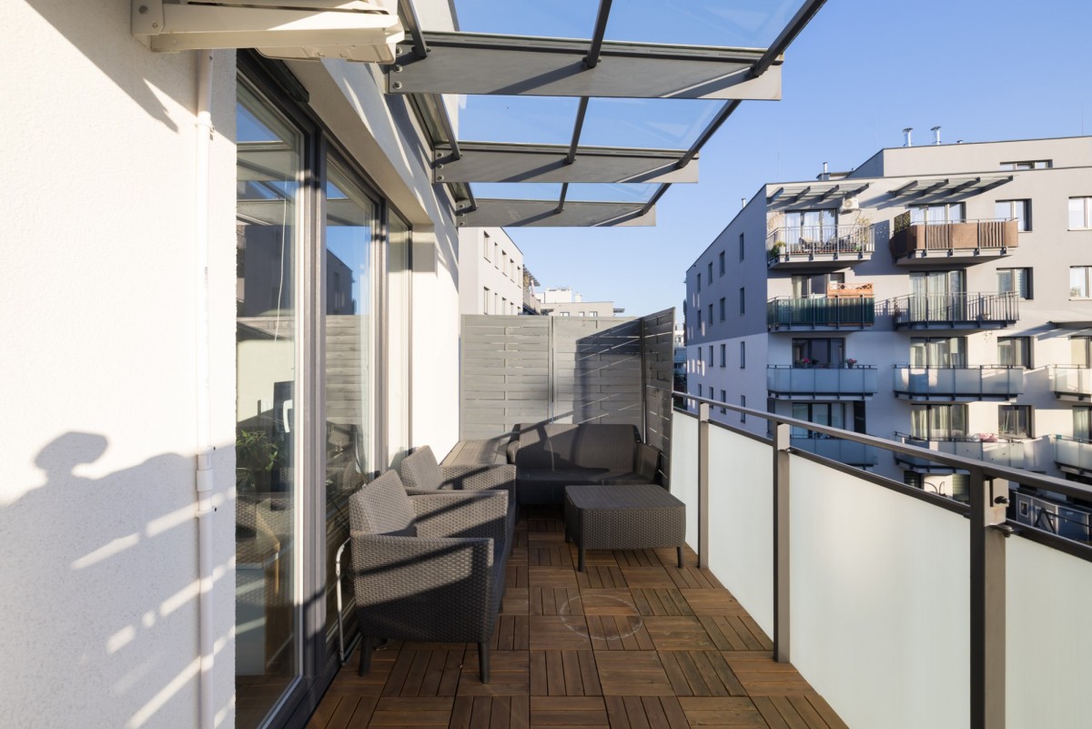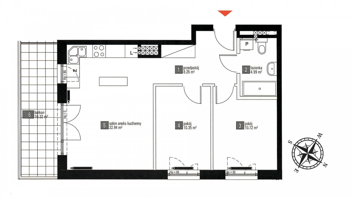 Z salonu wyjście na duży balkon o powierzchni 10,32 m², doskonały na relaks na świeżym powietrzu.