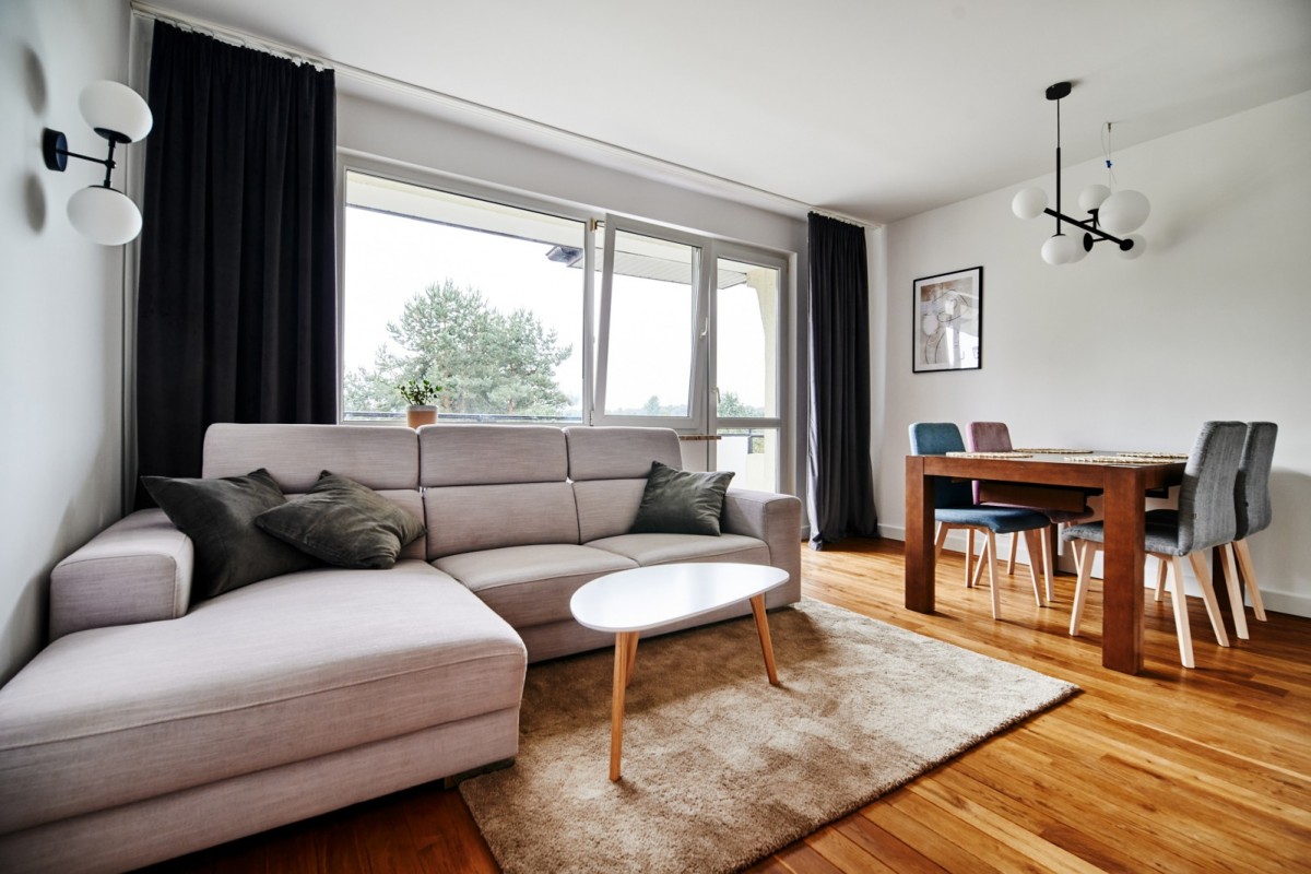 Salon - 20 m2 z ekspozycją południową z wyjściem na balkon (5m2)