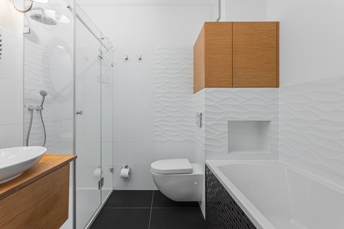 Mieszkanie wykończone jest w wysokim standardzie, z dbałością o komfort i funkcjonalność. Przestronny salon z częścią jadalnianą płynnie łączy się z otwartą, w pełni wyposażoną kuchnią, a duże przeszklenia zapewniają dostęp do ogrodu i tarasu. Obie sypialnie są ustawne i jasne, a łazienka z prysznicem oraz osobne WC dla gości podnoszą wygodę codziennego użytkowania. Całość uzupełnia elegancki hol wejściowy oraz starannie zaplanowana przestrzeń mieszkania, która tworzy przytulne i nowoczesne wnętrze.