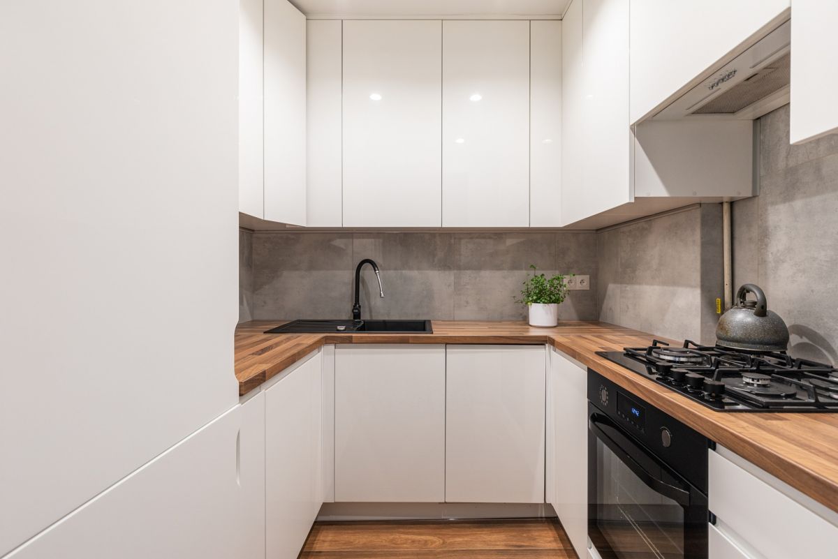 Meble i wyposażenie widoczne na zdjęciach w cenie. Kuchnia w pełni wyposażona w naczynia, garnki, sztućce, szklanki/kubki.