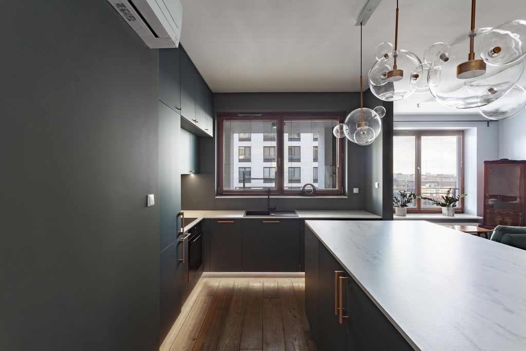 Apartament składa się z dwóch pokoi, salonu połączonego z kuchnią, holu, sypialni, łazienki i loggii. Mieści się na 12. piętrze, co zapewnia zapierający dech widok z okien.