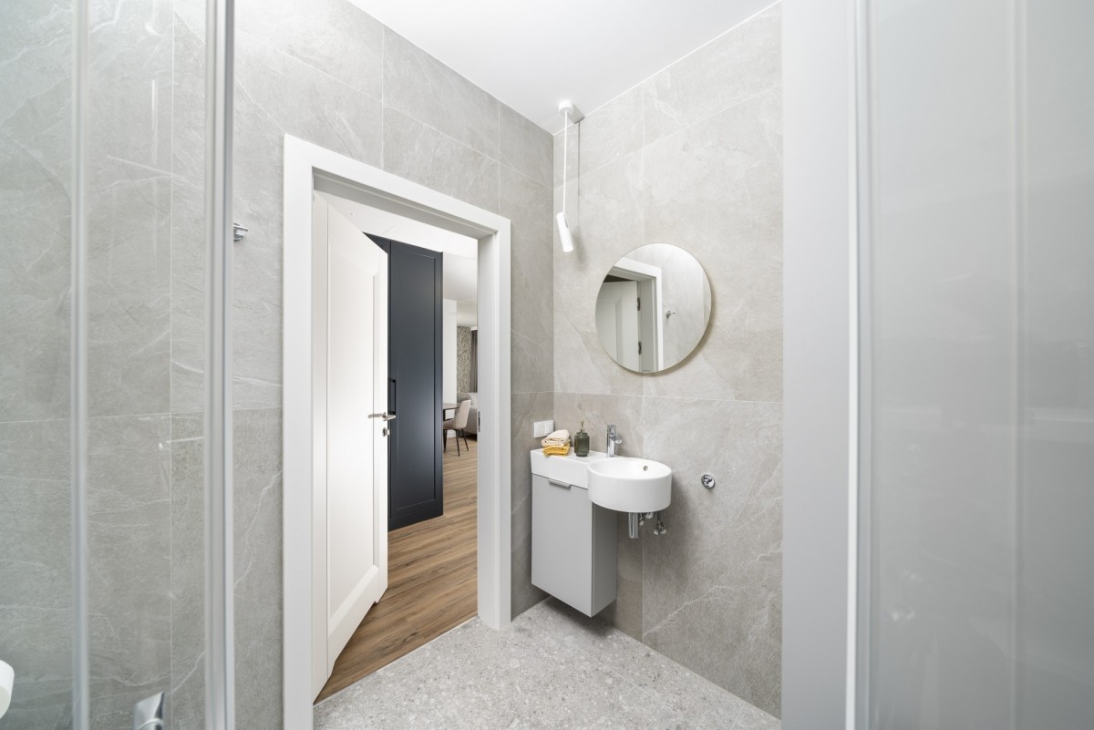 Pełna klimatyzacja Panasonic we wszystkich pomieszczeniach mieszkalnych (pokoje, przedpokój).