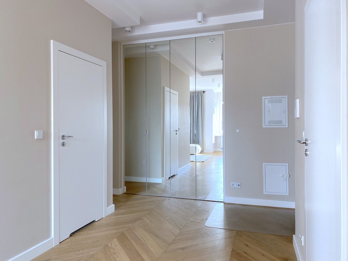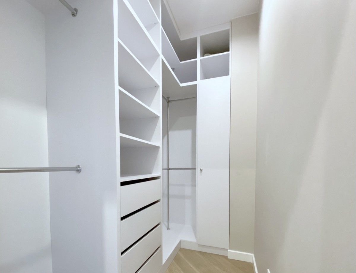 Oddzielna garderoba jak również przestronne szafy w holu dają wiele miejsca do przechowywania. Dopełnieniem tej przestrzeni jest duża komórka lokatorska w cenie najmu.