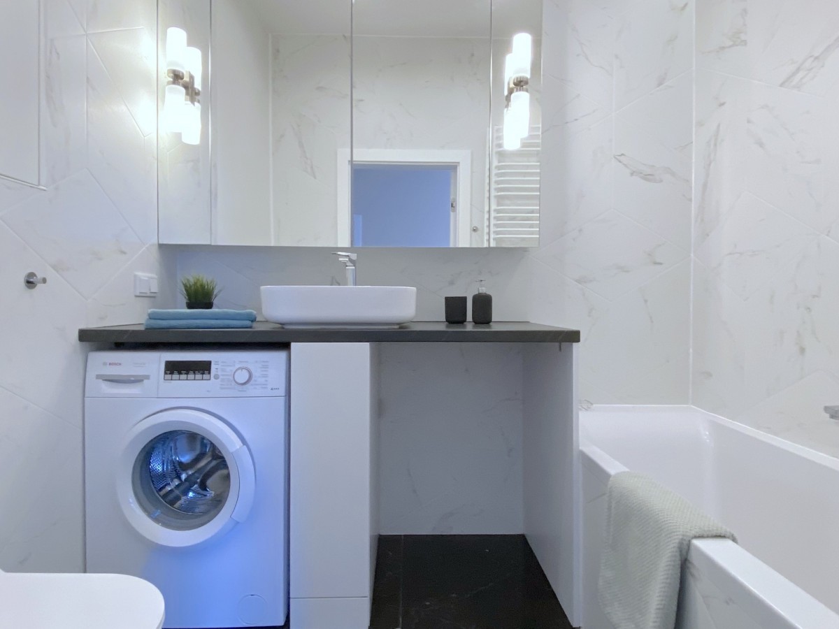 Zaletą dla rodziny są również dwie łazienki. W jednej wanna, pralka i toaleta, a w drugiej WC i prysznic.