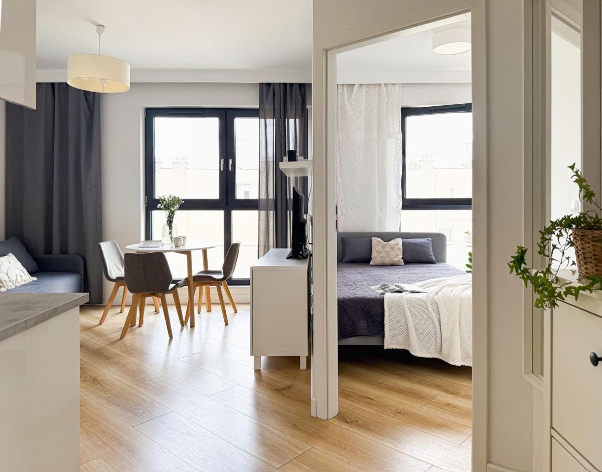 Do wynajęcia nowoczesne, 2-pokojowe mieszkanie na Woli o wysokim standardzie, zlokalizowane w samym sercu Warszawy, na 6. piętrze eleganckiego apartamentowca.