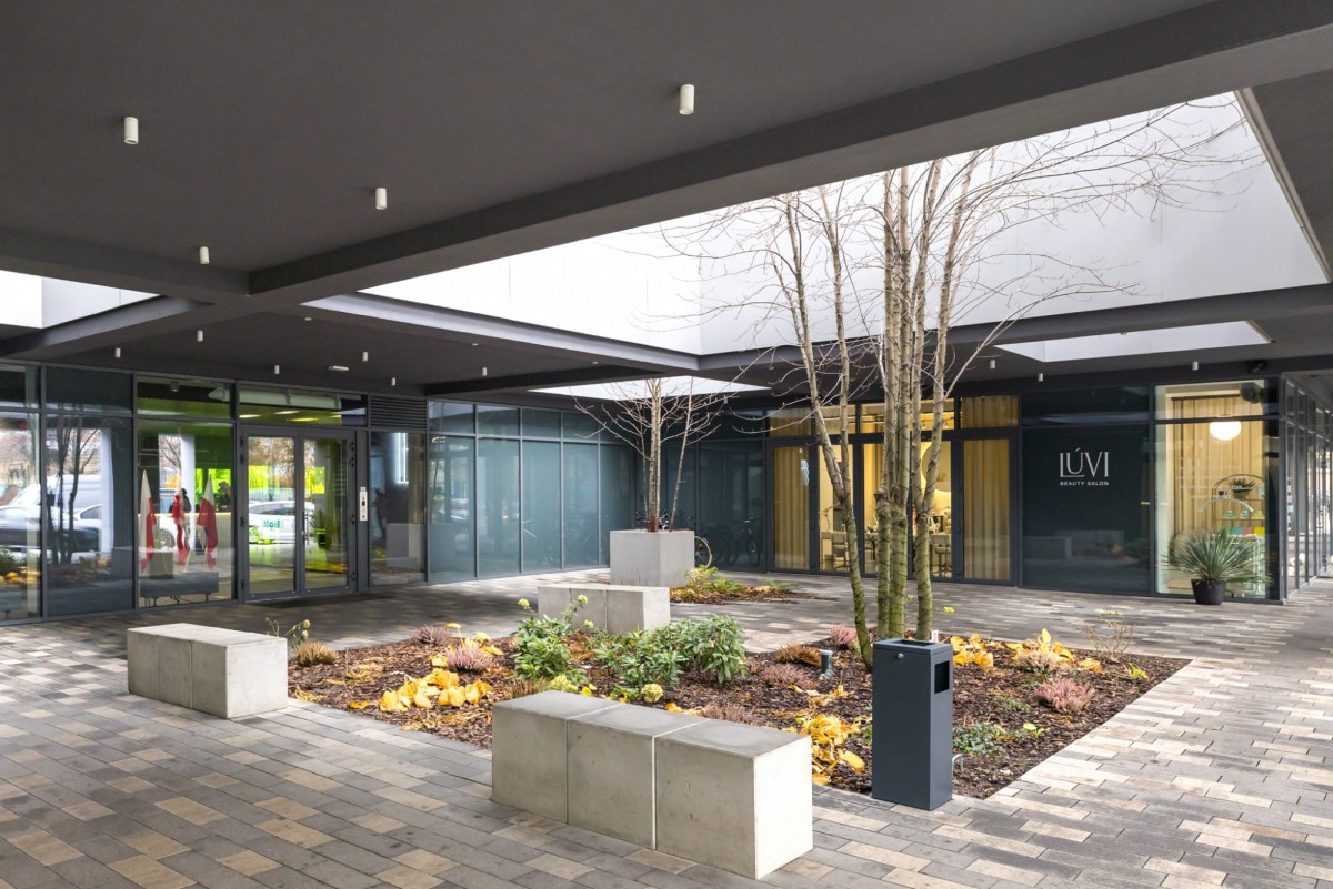 liczne sklepy, apteki, siłownie, kawiarnie i punkty usługowe.