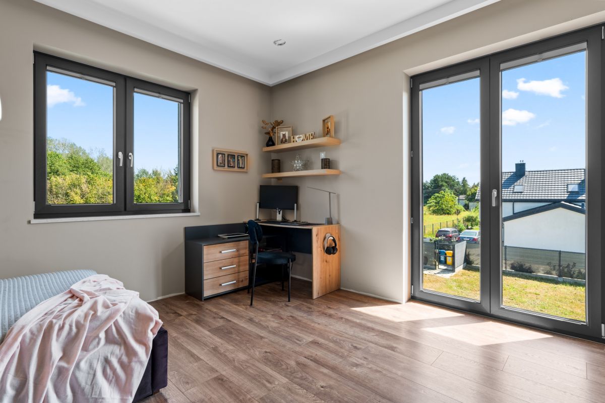 - trzy pokoje, które mogą pełnić funkcję sypialni, pokoi dziecięcych lub gabinetu