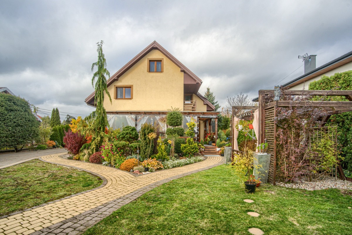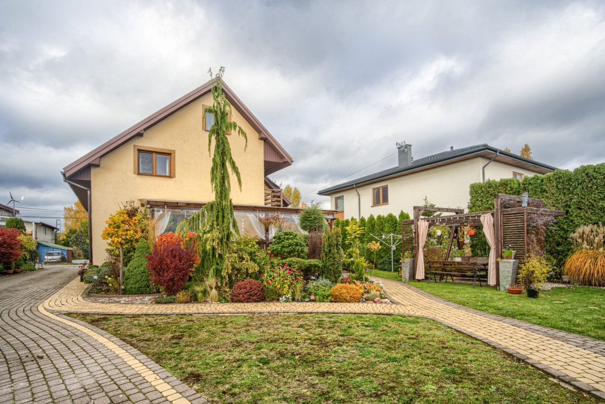 Dom składa się z parteru i piętra oraz z dodatkowego strychu do własnej aranżacji. Dzięki praktycznemu projektowi, oba poziomy mogą służyć jako oddzielne mieszkania, co jest świetnym rozwiązaniem dla dużych rodzin lub rodzin wielopokoleniowych.